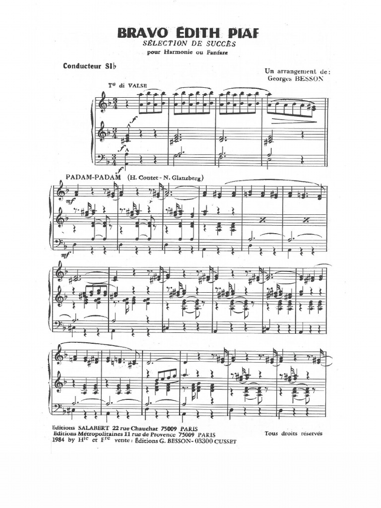 Bravo Edith Piaf Arr. Georges Besson | PDF