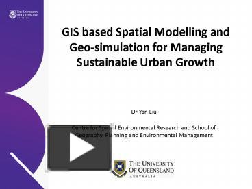GIS based Spatial Modelling and Geo-simulation for Managing Sustainable ...