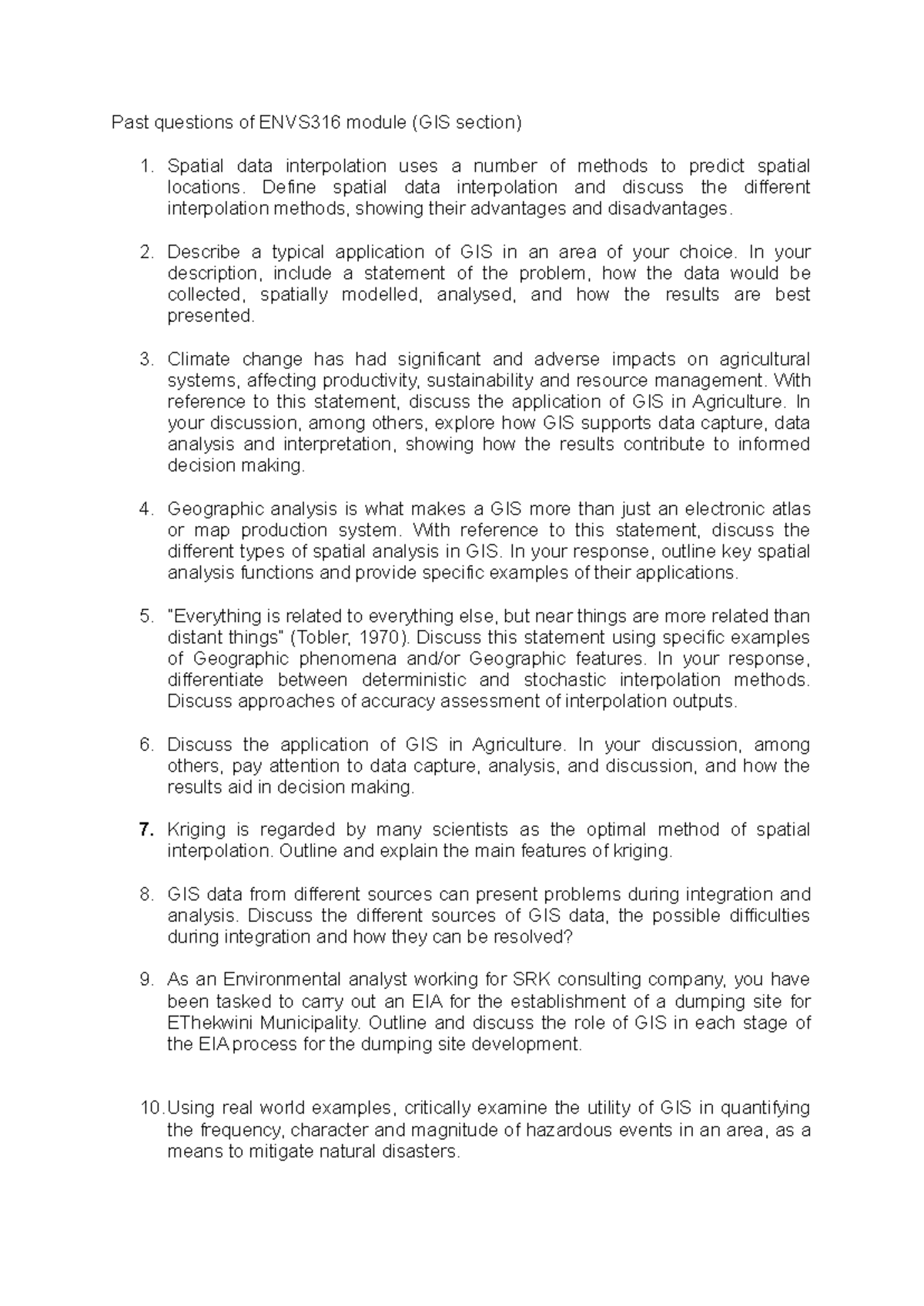 Past Exam Questions for ENVS316: GIS & Remote Sensing Topics - Studocu