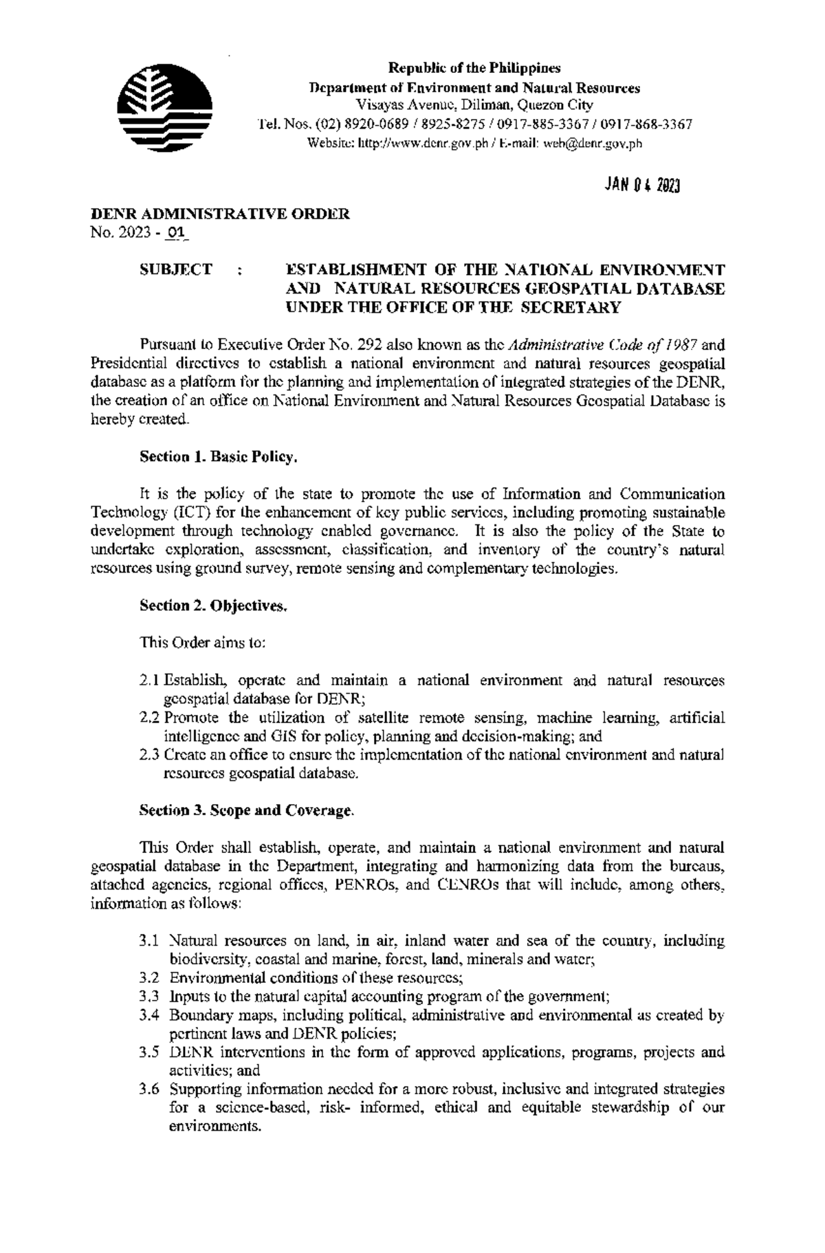 DAO-2023-01: Establishment of the National ENR Geospatial Database ...