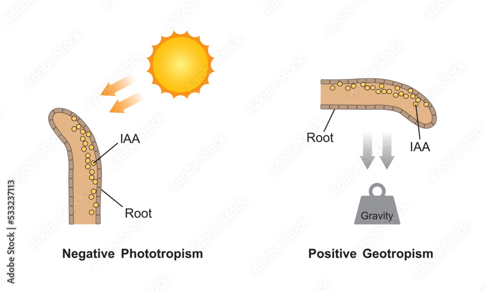 Positive And Negative Geotropism Stock Illustration - Download Image ...
