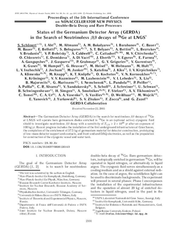 (PDF) The GERmanium Detector Array (Gerda) for the search of ...