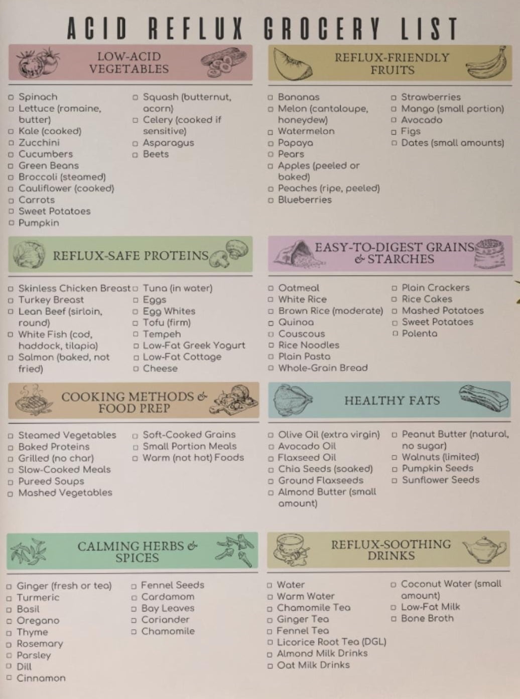 Acid Reflux Food List Poster, Food List, Low Acid Food List Poster ...