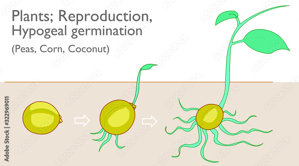 Hypogeal germination. Vegetative propagation stages. Examples plants ...
