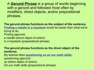 Gerund definition, examples, and gerund phrases | PDF