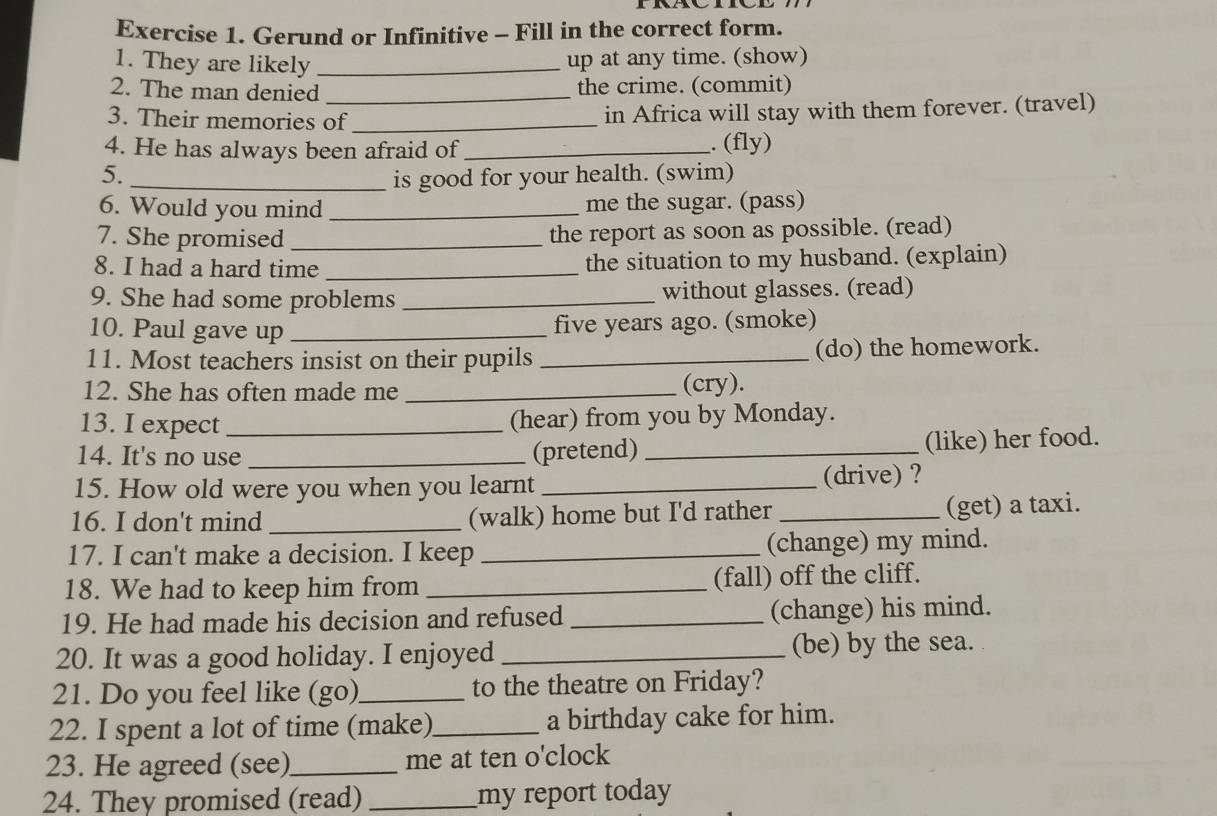 Giải quyết:Gerund or Infinitive - Fill in the correct form. 1. They are ...