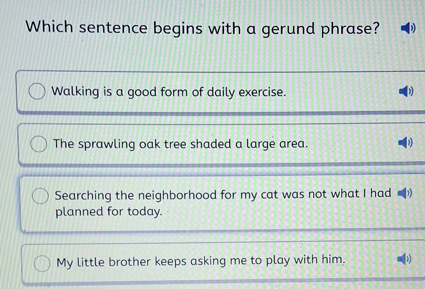 Solved: Which sentence begins with a gerund phrase? Walking is a good ...