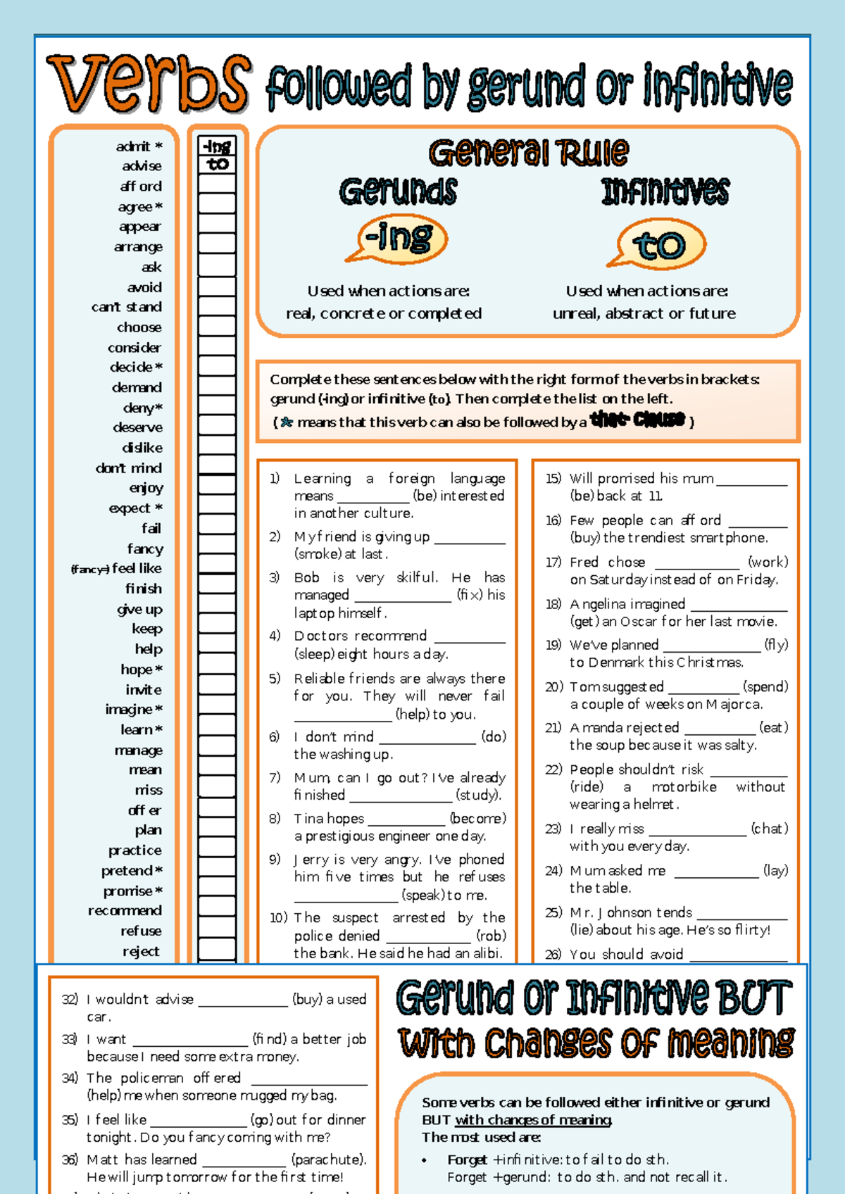 Gerund (V-ing) vs. Infinitive (To V) – English Grammar Exercises for B1 ...