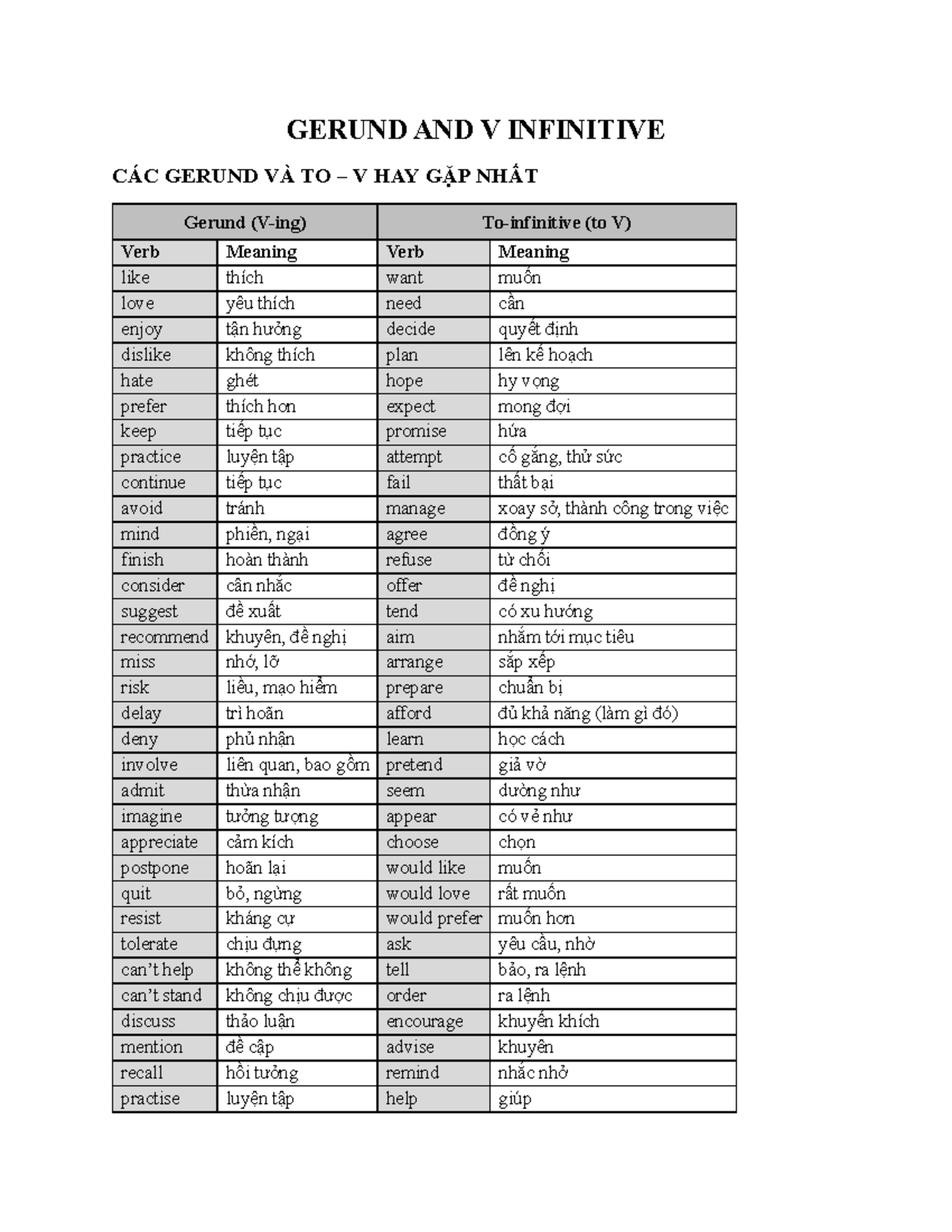 Verbs Followed by Gerund or Infinitive: A Comprehensive Guide - Studocu
