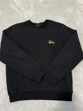 Stussy | Sweaters | Stussy Black Crewneck With Gold Script Logo | Poshmark