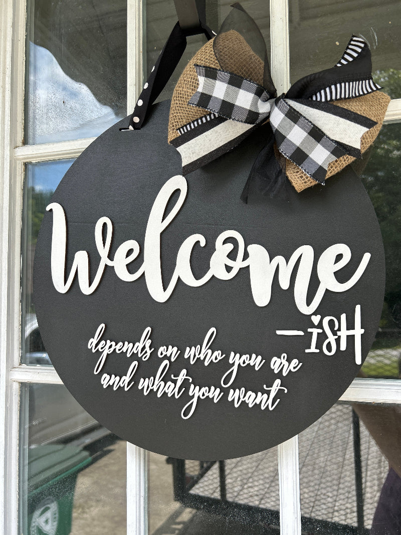 Welcome Buffalo Plaid Pine Tree Door Sign – InScribed