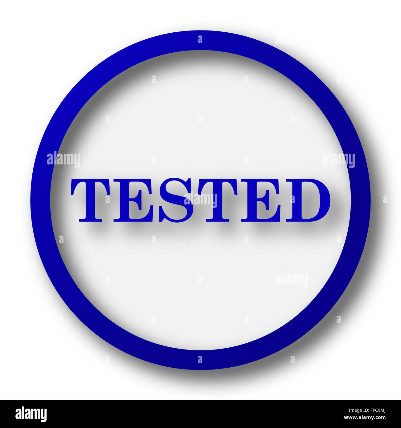 Tested icon. Blue internet button on white background Stock Photo - Alamy
