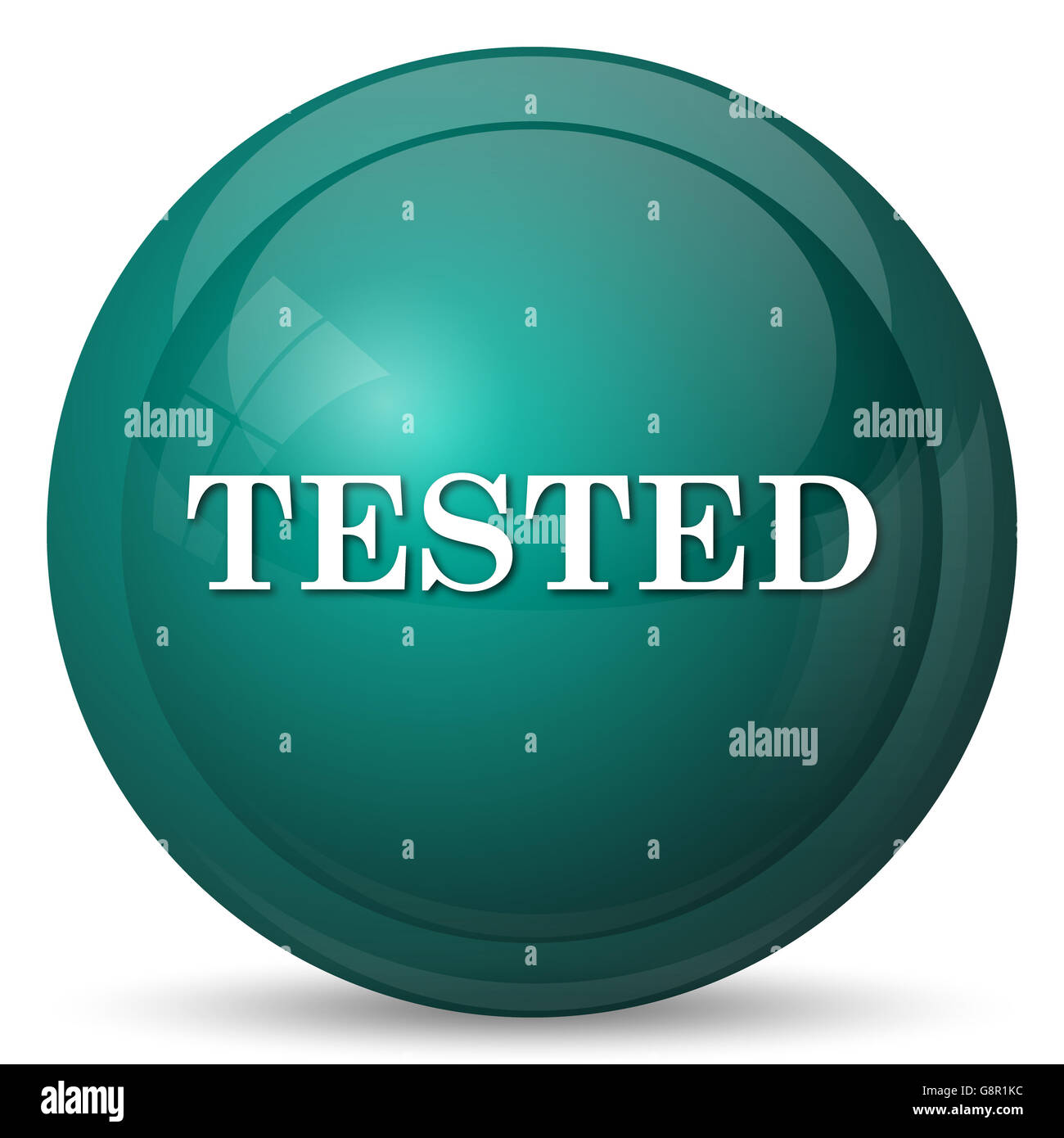 Tested icon. Shiny glossy internet button on white background Stock ...