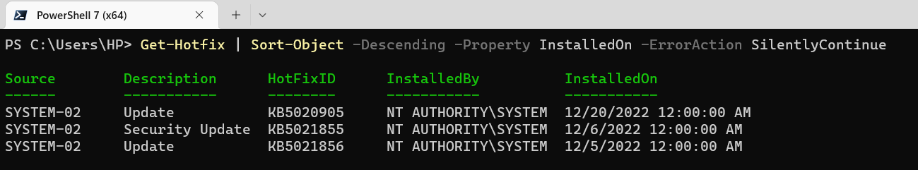 How to use Get-Hotfix to check installed windows updates on System ...