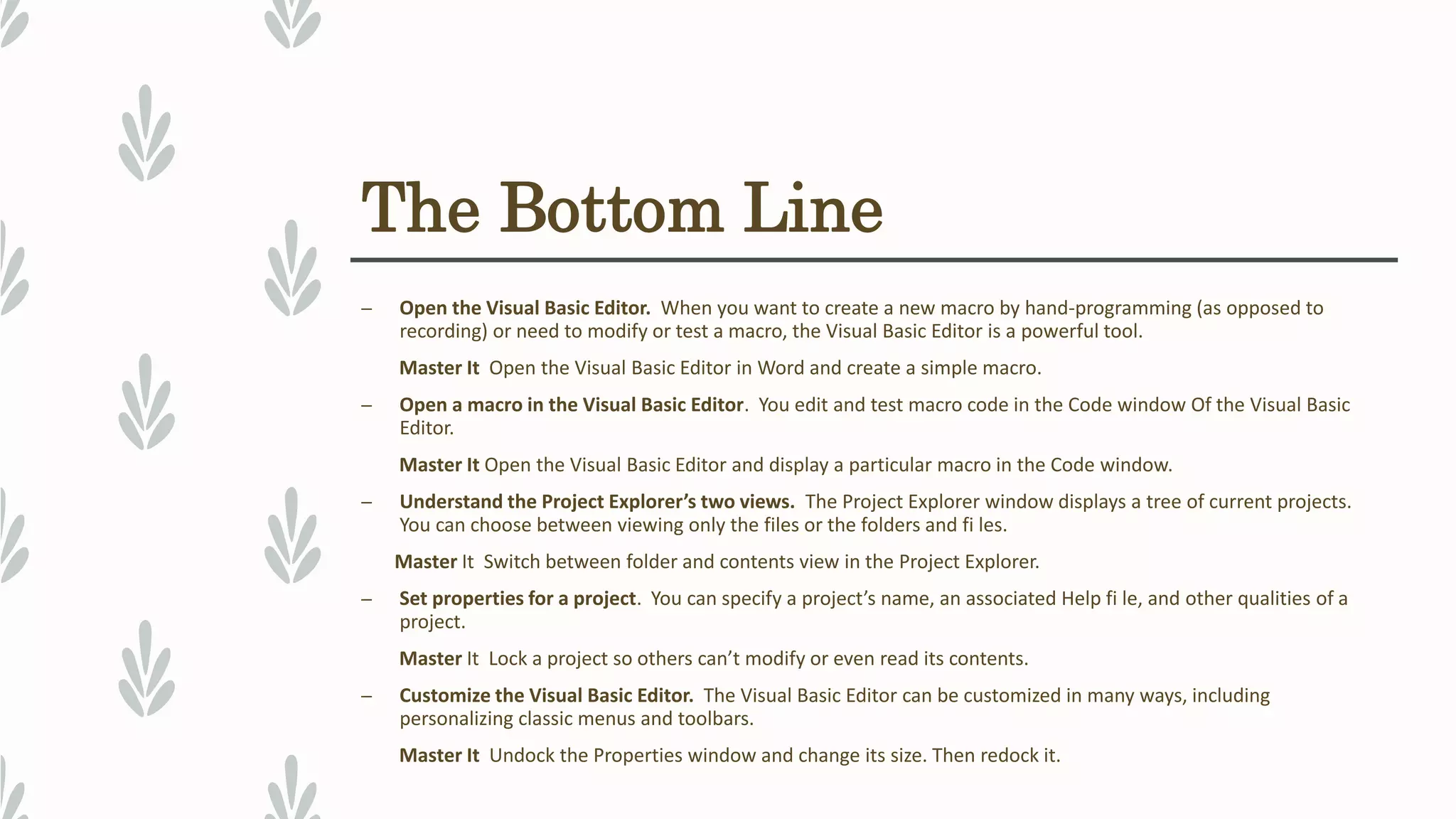 Getting started with the visual basic editor | PPT