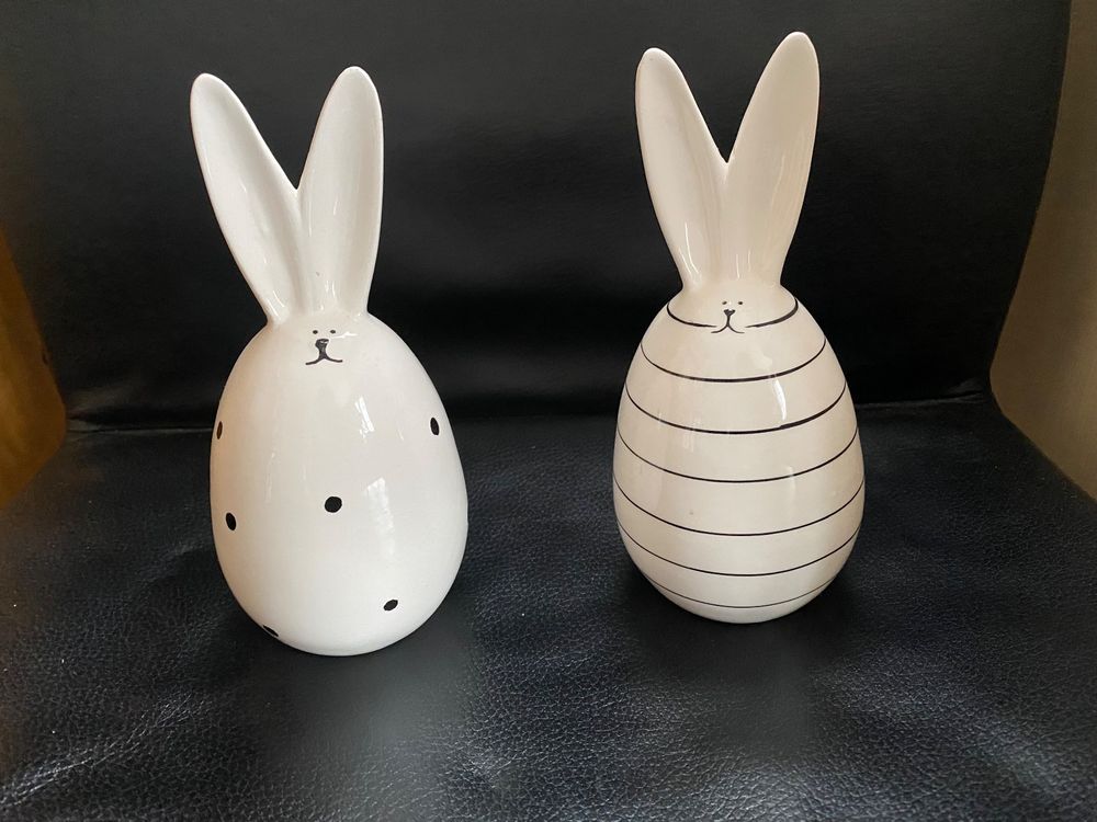 2 Hasen weiss getupft Osterdeco neuwertig 18 cm (Neu (gemäss ...