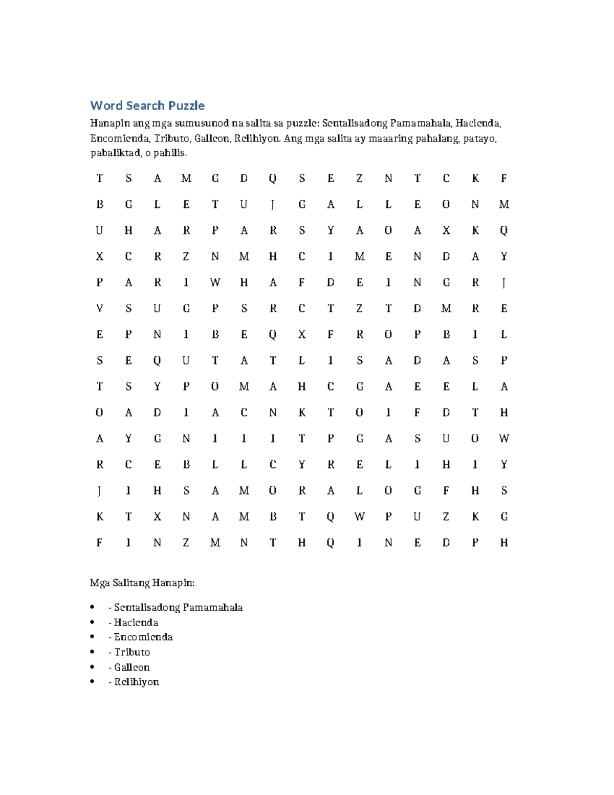 Word Search Puzzle: Mga Salita na Dapat Hanapin - Studocu