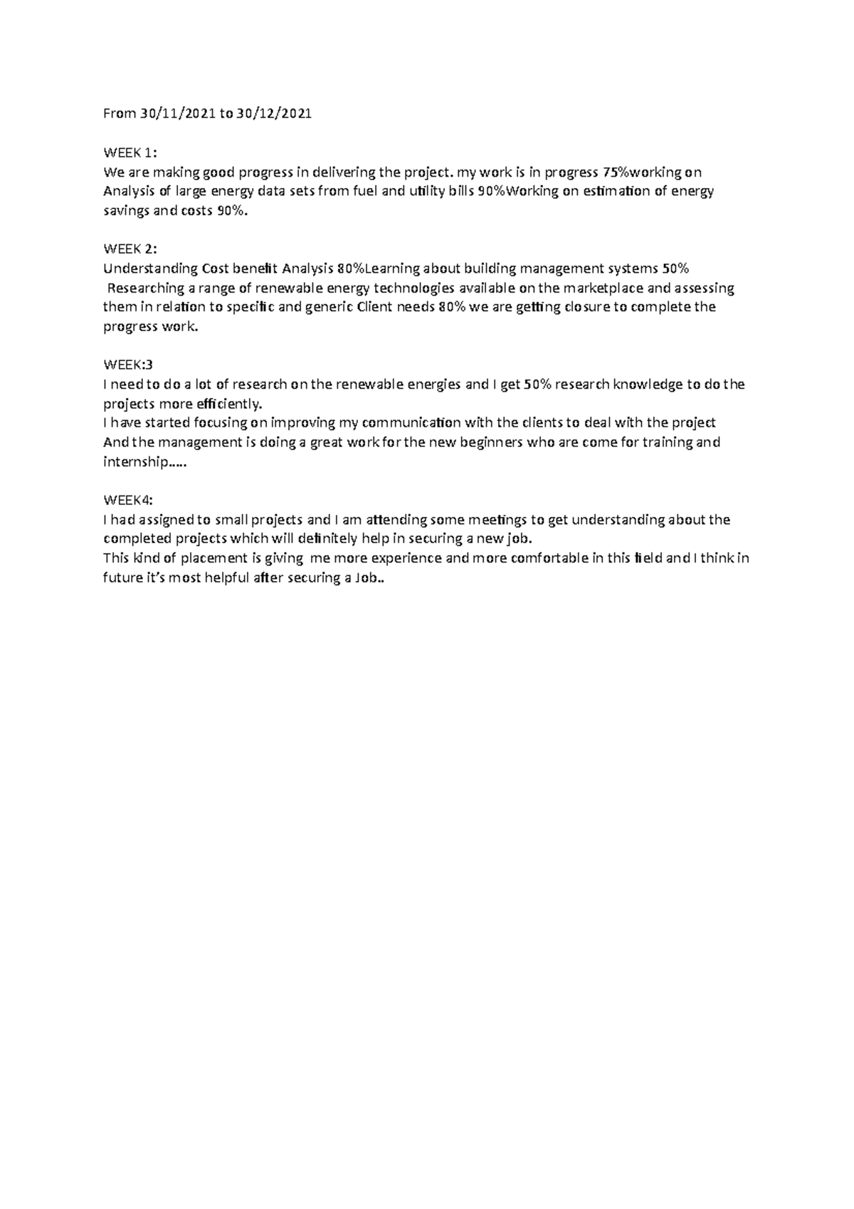 Logbook 1222 - Gghhhhhh - From 30/11/2021 to 30/12/ WEEK 1: We are ...