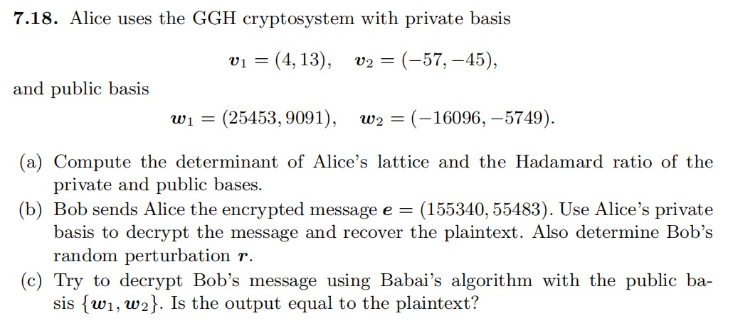 7.18. Alice uses the GGH cryptosystem with private | Chegg.com