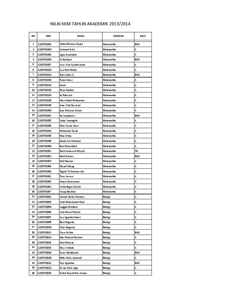Nilai KKM 2014 | PDF