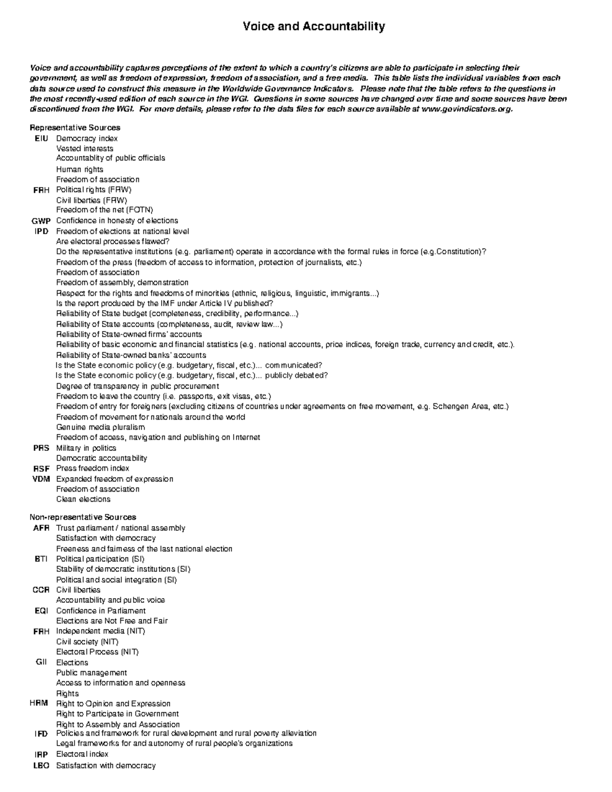 Va - gghgh - Voice and Accountability Representative Sources EIU ...