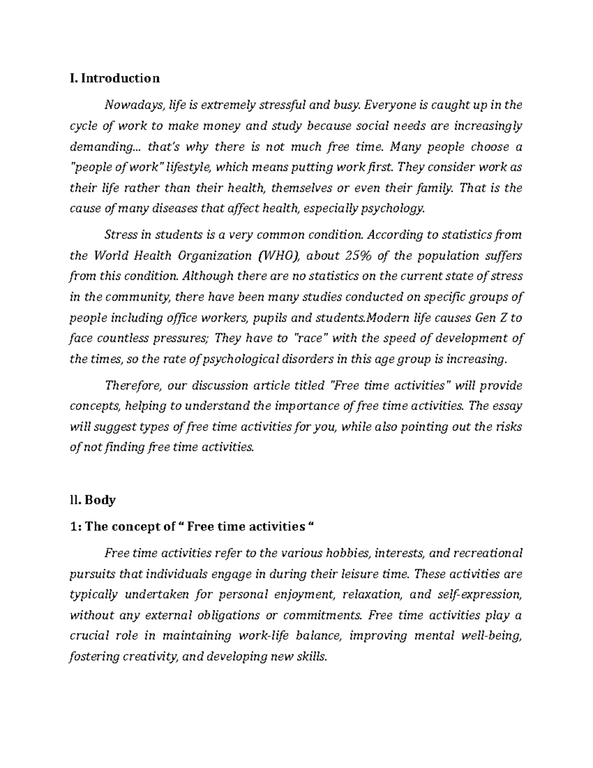 Bài thảo luận TA1 nhóm 1 - ghghgh - I. Introduction Nowadays, life is ...