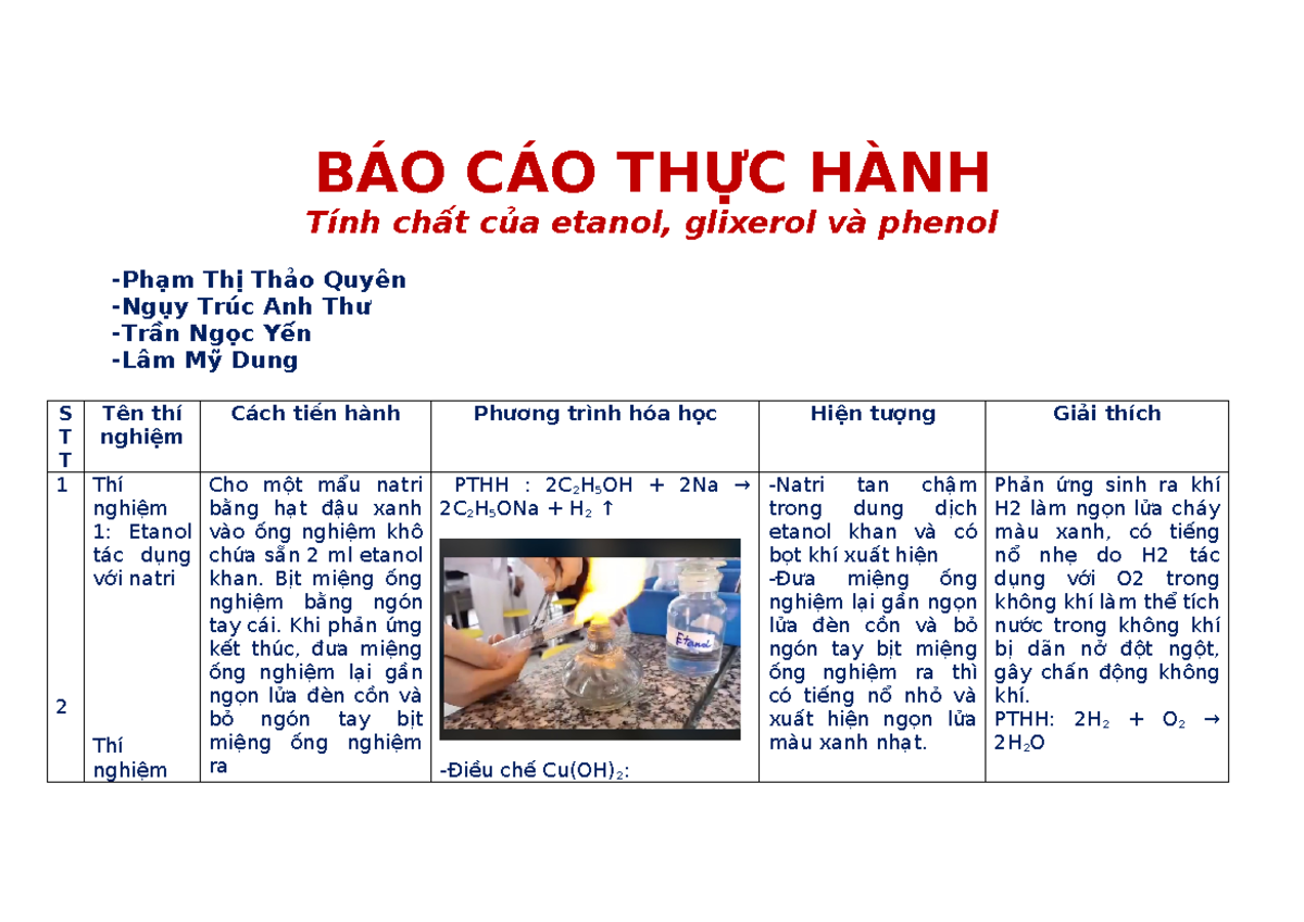 Baocao - ghjhf jhyfyf - BÁO CÁO THỰC HÀNH Tính chất của etanol ...