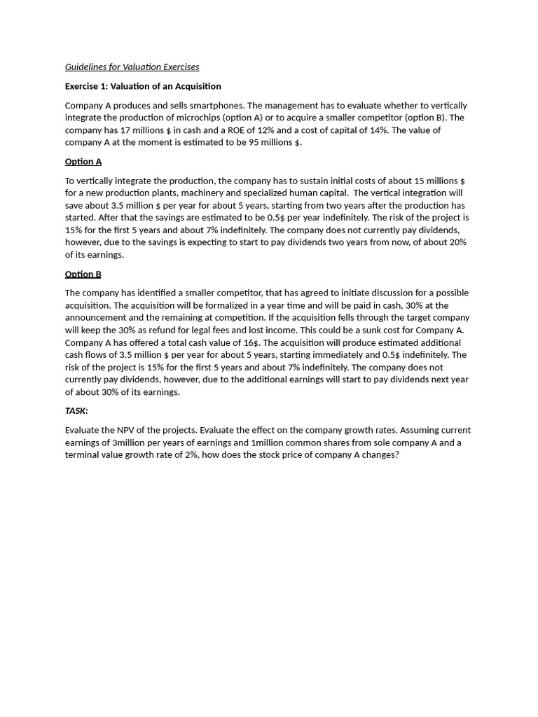 Guidelines For Valuation Exercises | PDF