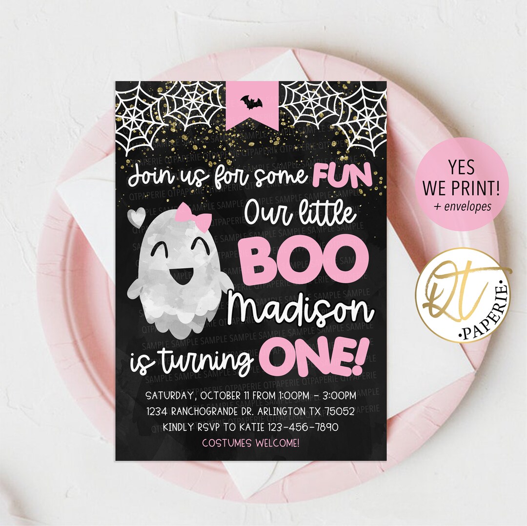 Girl Halloween 1st Birthday Invitation, Our Little Boo Ghost Invitation ...