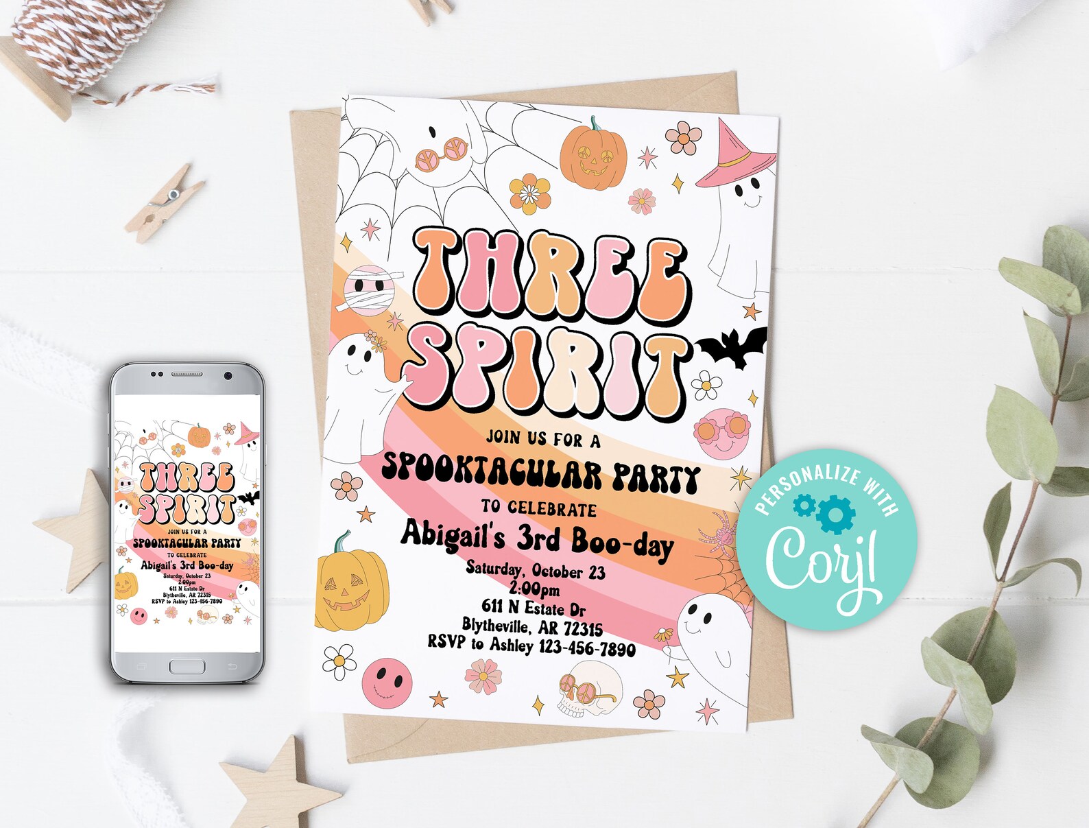Editable Three Spirit Halloween Ghost Invitation Pink Retro - Etsy