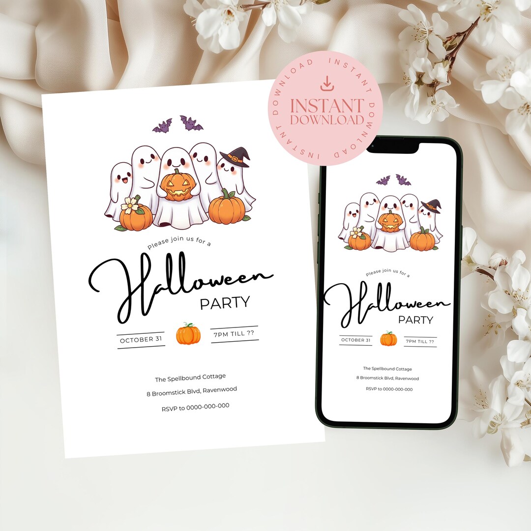 Halloween Ghost Invitation Template Digital, Editable Halloween ...