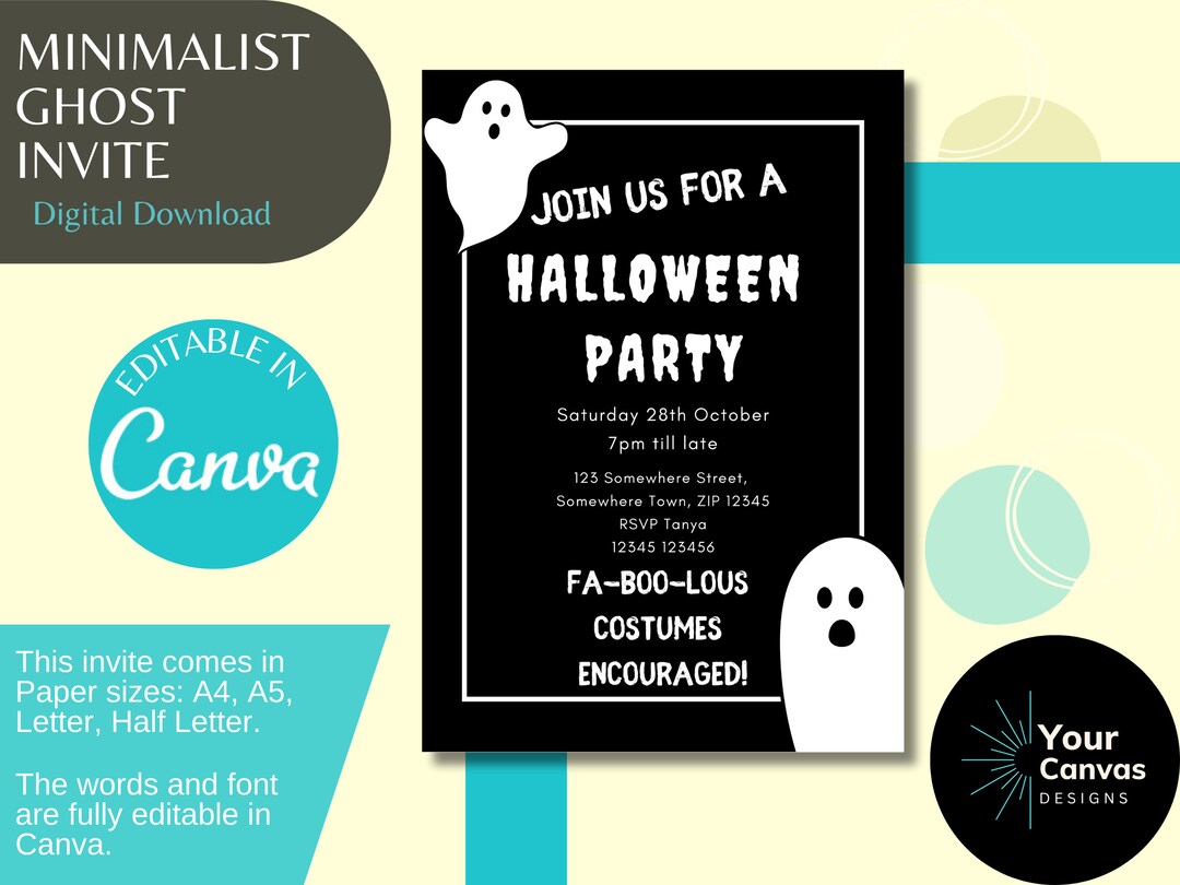 Spooky Ghost Halloween Party Invitation: Editable Canva Template ...