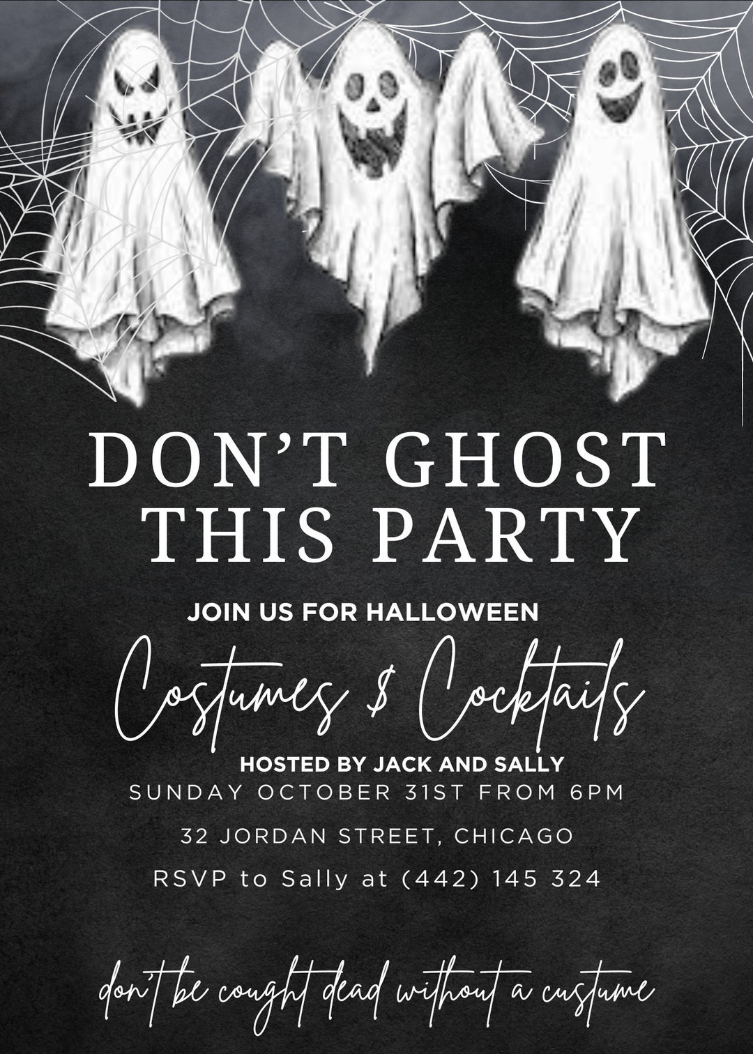 Don't Ghost This Party Halloween Invitation, Costumes & Cocktails ...