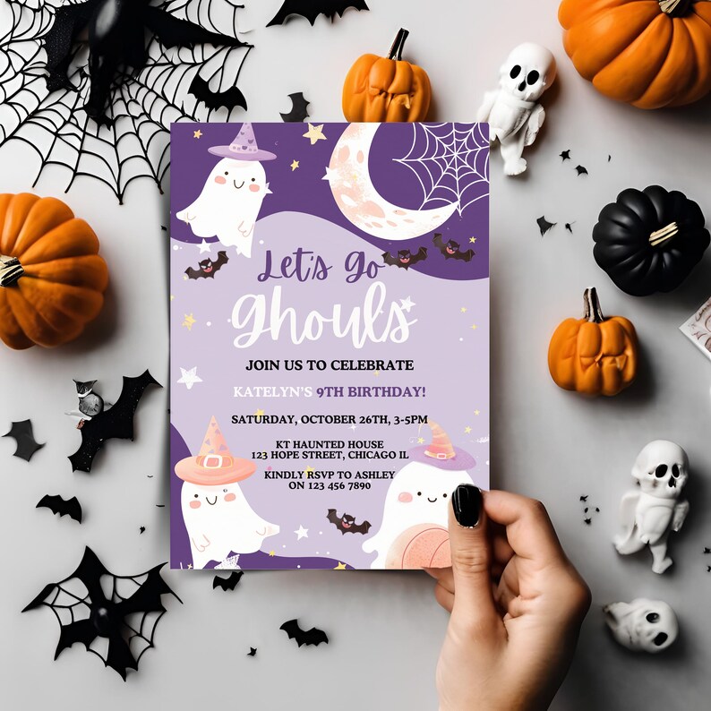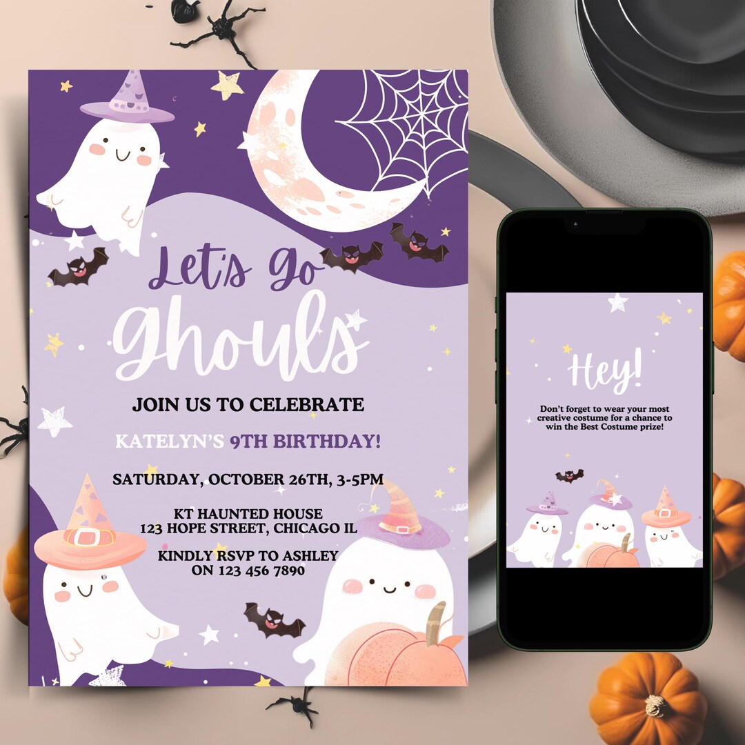 Editable Let's Go Ghouls, Ghost Invitation, Halloween Ghost, Birthday ...