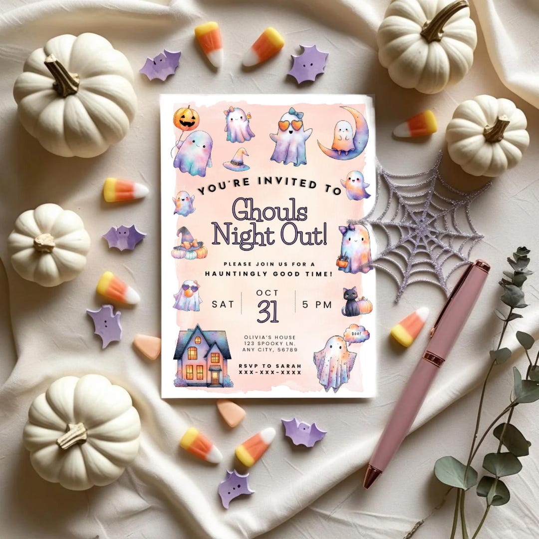 Iridescent Halloween Ghosts Invitation, Ghouls Night Printable, Girls ...