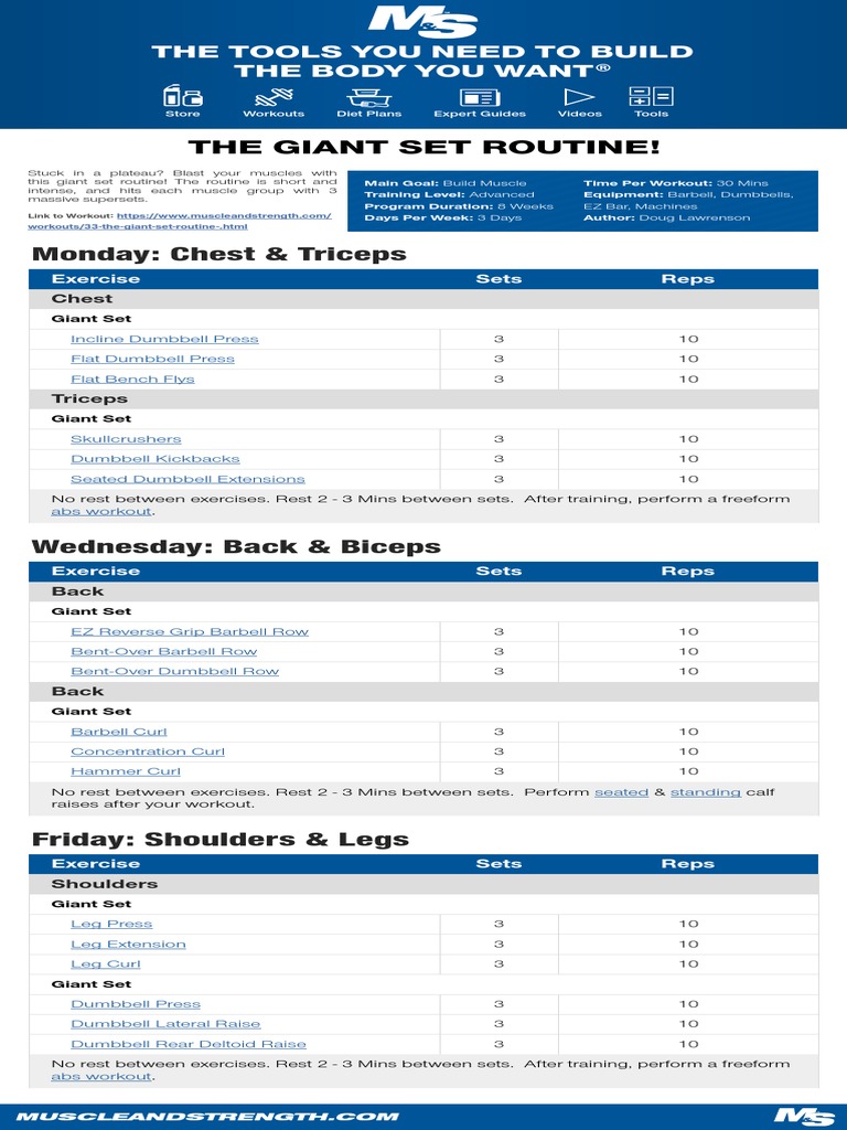 GIANT SET FOR HYPERTROPHY. Example 3. Get A Ton of Work Done To Build A ...