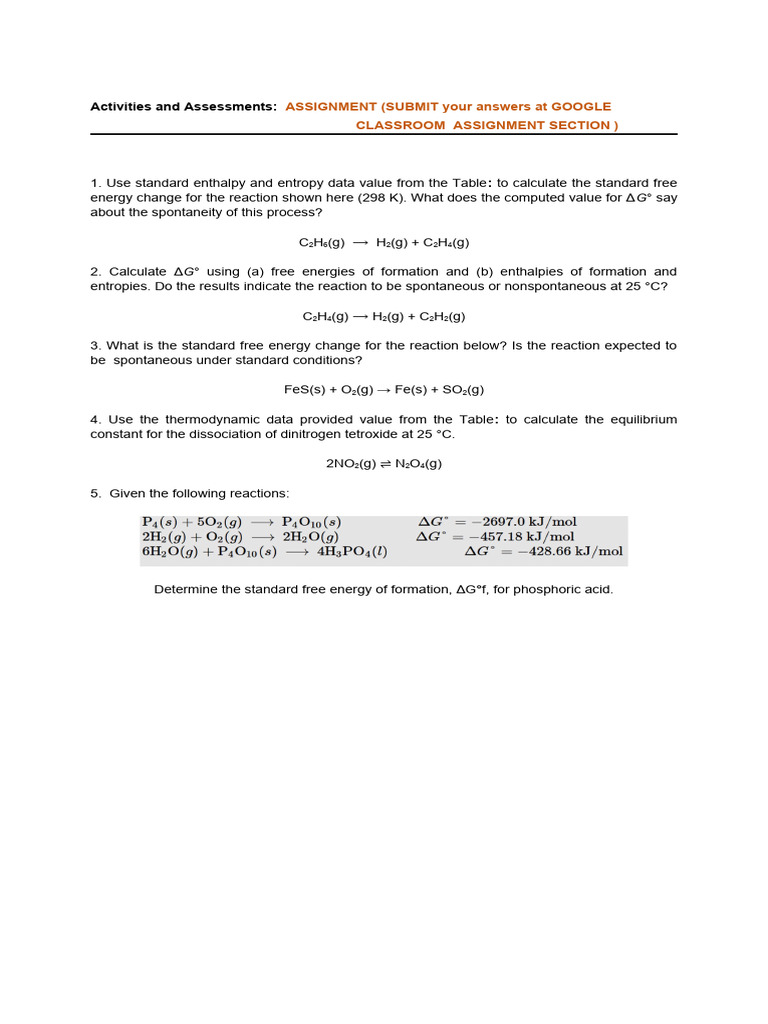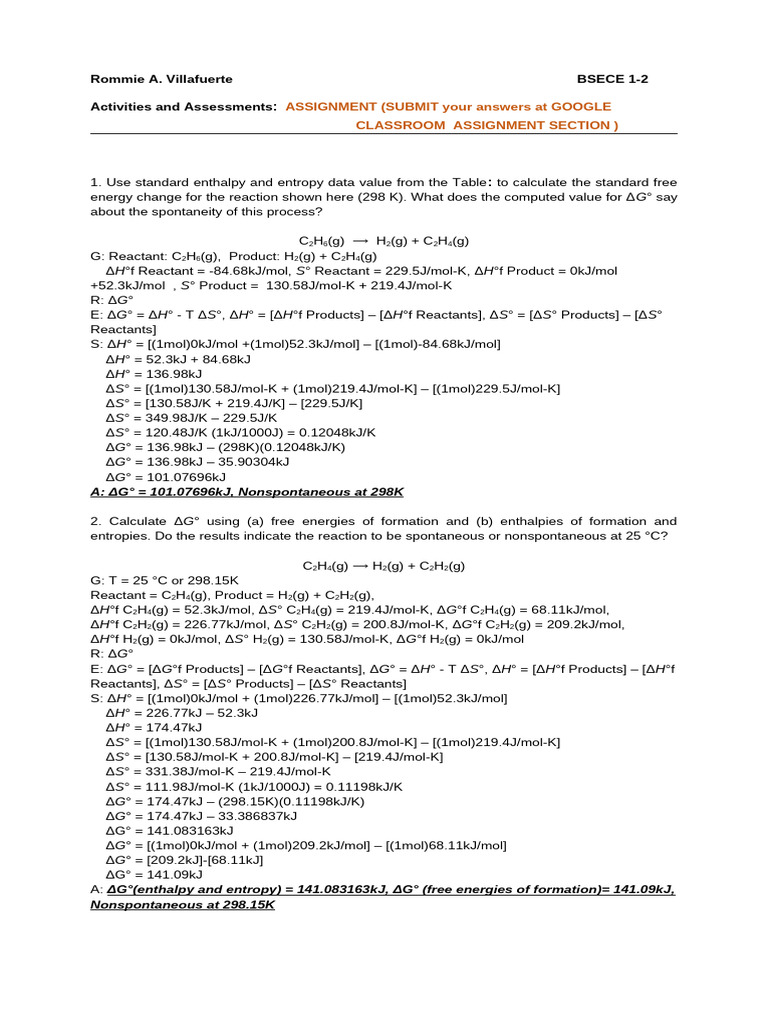 Villafuerte - Assignment Lesson 5 UNIT 04 GIBBS Free Energy | PDF ...