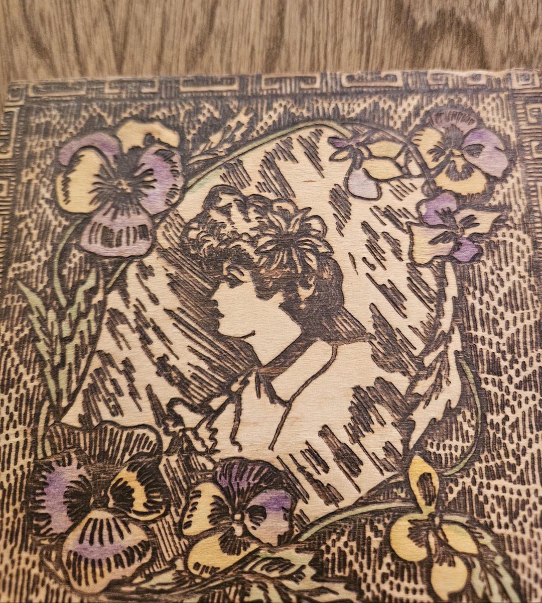 Art Nouveau Gibson Girl Flemish Pyrography Folk Art Burnt Wood Box - Etsy