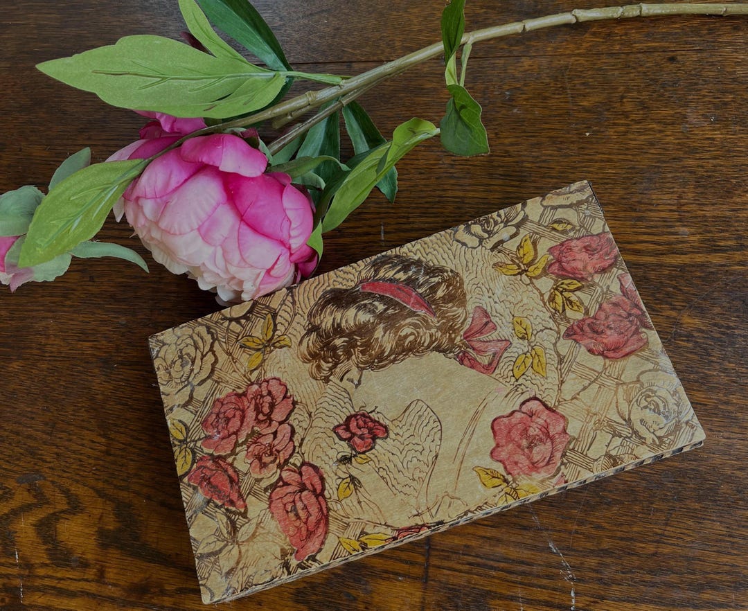 Victorian Pyrography Wooden Glove Box, Gibson Girl With Red Roses, Folk ...