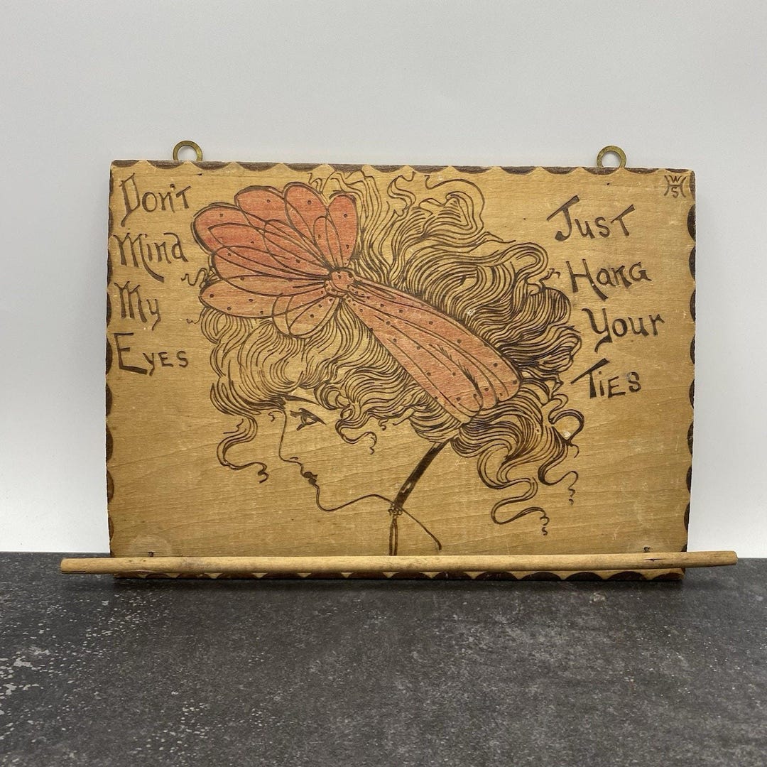 Vintage Pyrography Tie Rack Gibson Girl "don't Mind My Eyes" Necktie ...