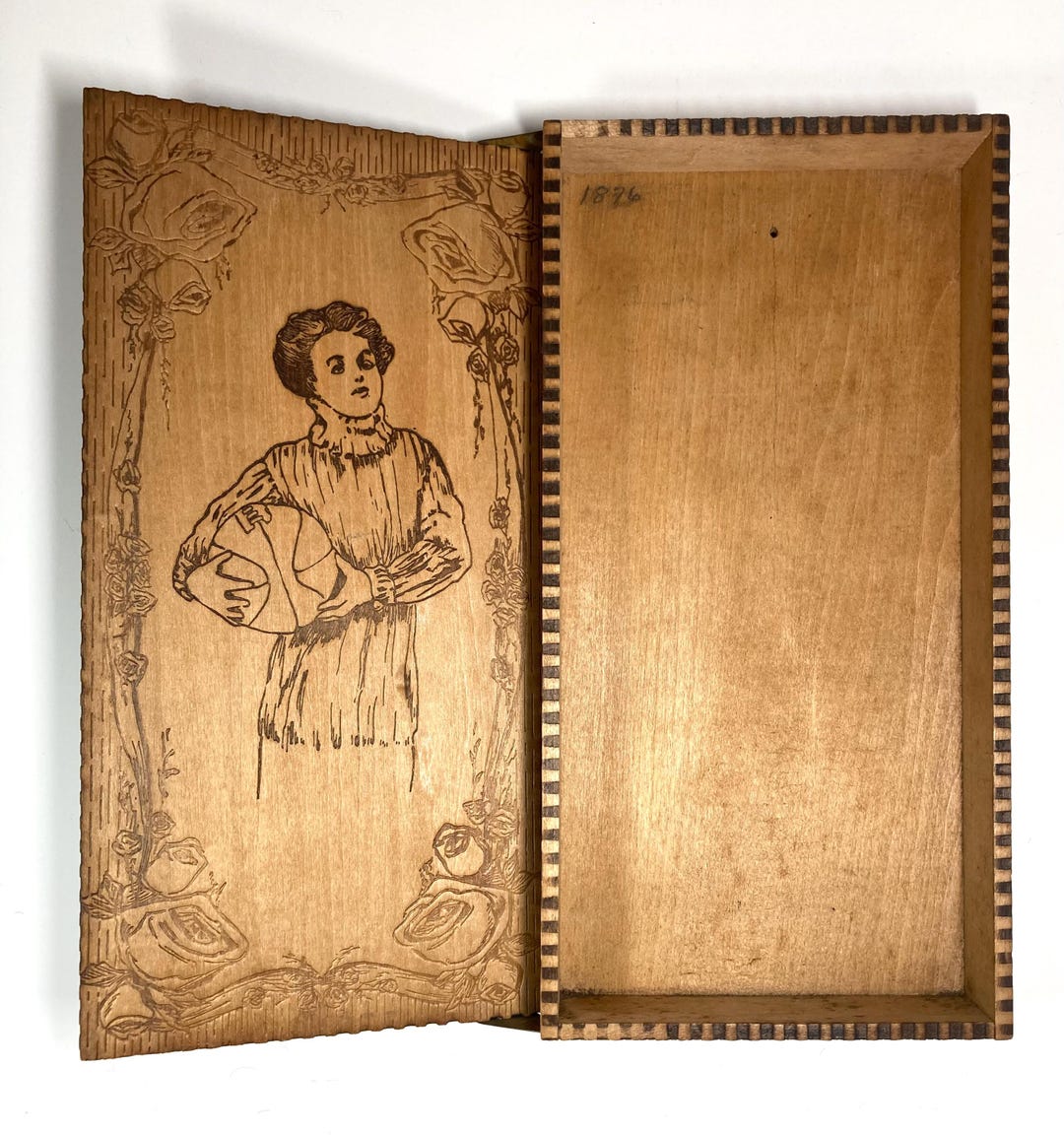 Vintage Large Pyrography Box Gibson Girl Holding a Basket Ball ...