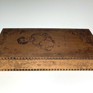 Antique Pyrography Burnt-wood Box, Gibson Girl & Roses, Art Nouveau, 4 ...