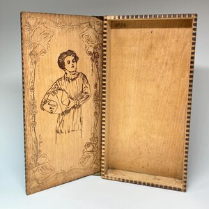 Vintage Pyrography Wood Box Gibson Girl Tramp Art Pyrographic - Belfast ...