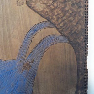 Antique PYROGRAPHY, Gibson Girl WOMAN , Blue Dress, Burnt WOOD Flemish ...