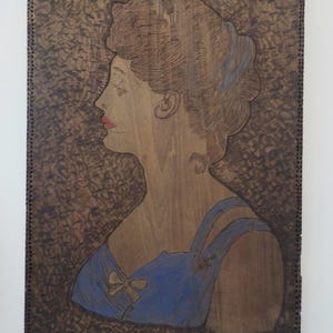 Gibson Girl Pyrography Wood Burning Wall Plaque Hanging Pyrograph ...