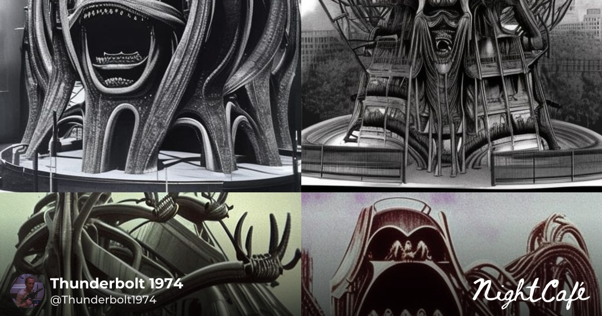 Giger-esque Biomechanical Amusement Park Ride Desi... - AI Art