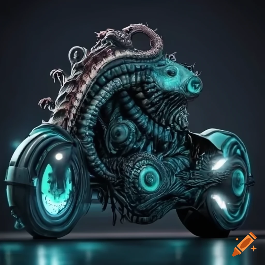 Lovecraftian-inspired flying motorcycle with giger-esque tentacles in ...