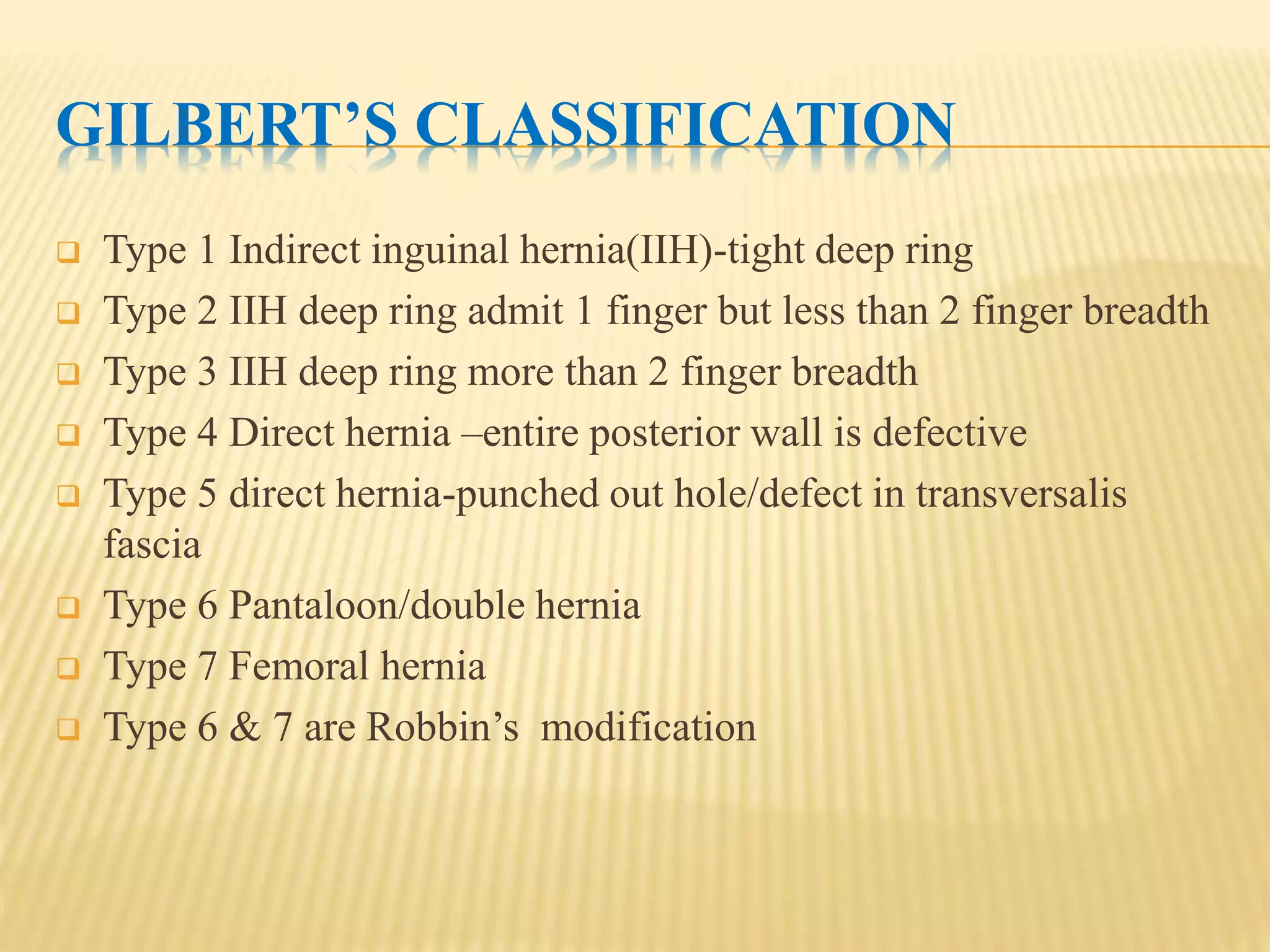 Gilbert classification of inguinal hernias: