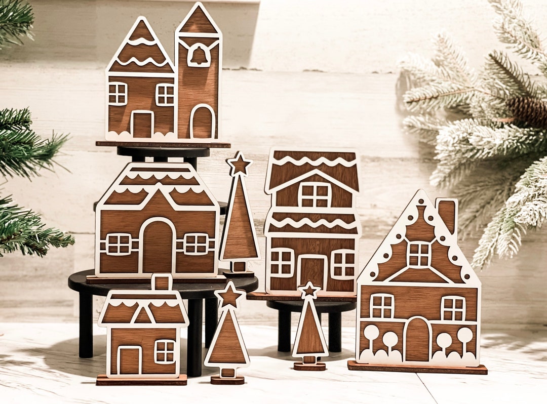 Gingerbread Style Christmas Village Holiday Village Wooden - Etsy