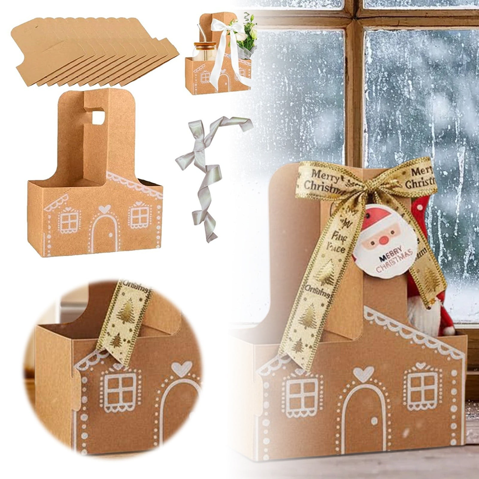Puwuzcl Christmas Gingerbread House Paper Cup Holder Gift Box – Festive ...